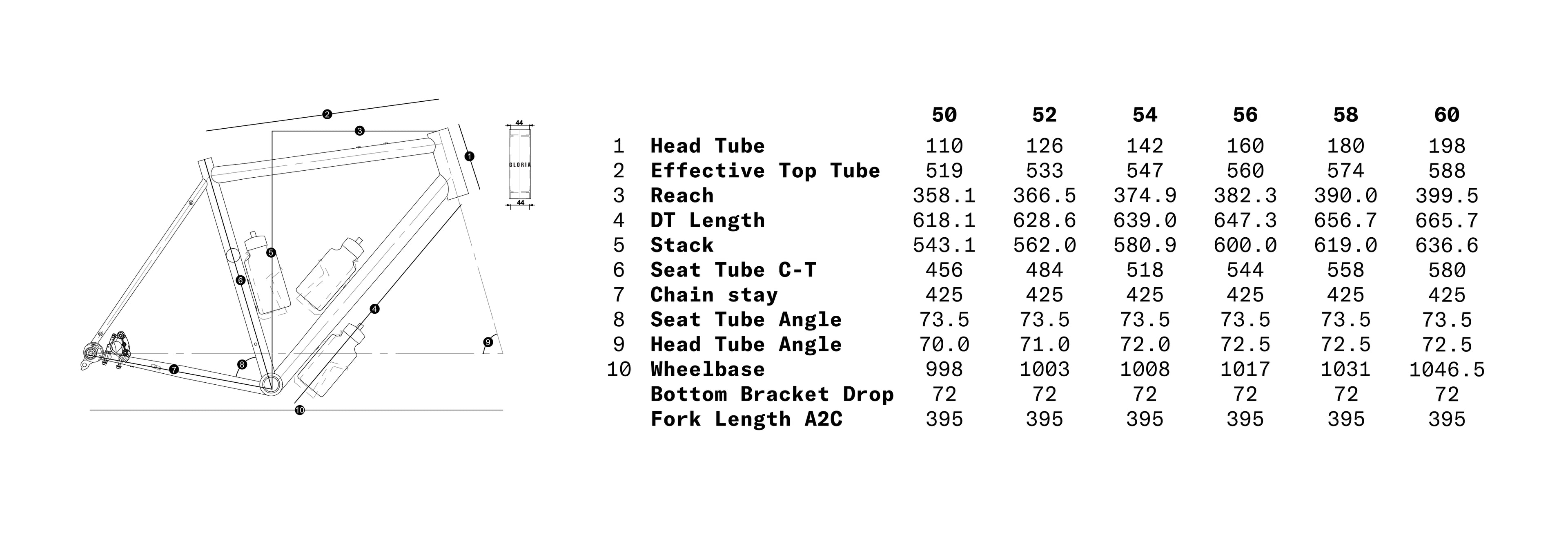 If you have any questions about sizing or are unsure which size to choose, just email us at shop@gloriacycling.com with the measurements below, and we’ll send you a CAD drawing with your recommended size.